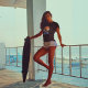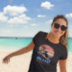 Sunset Wave-Riding Cat T-Shirt: A black cat surfing on a wave, with the sun setting in shades of pink and orange, creating a whimsical and surreal scene.