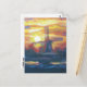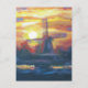 Sunset/ sunrise windmill rural landscape fine art painting postcard with windmill and colourful orange red yellow sky nature impressionists painting artwork card.
