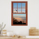 Sunset with Flying Bird Scene Window Illusion Poster