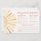 This horizontal Baby Predictions & Advice card features a bright and cheerful sun-themed design. On the left side, a big sun with warm rays in classic shades of yellow and orange adds a joyful, gender-neutral touch. On the right, guests are invited to fill in their best guesses for baby’s arrival, including date, time, weight, eye color, hair color, and who the baby will resemble.