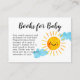 Cute sunshine theme baby shower books for baby card featuring watercolor illustration of a smiling sun with clouds. This card can be sent along with your invitation and asks guests to bring a children's book instead of a card. Gender neutral design.