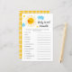 Cute sunshine theme baby shower baby word scramble card featuring watercolor illustration of a sun with stars and clouds. The list of words on this card are all related to babies and they are scrambled. The guests are going to compete who can unscramble all of them first! ANSWER KEY: 1. car seat 2. milk 3. playpen 4. pacifier 5. diaper 6. rocking chair 7. nursery 8. baby monitor 9. swaddle 10. formula 11. rubber ducky 12. stroller.