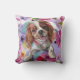 Floral dog art pillow with 'Sunshine' blenheim cavalier king charles spaniel design in summer colours. White back.