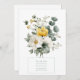 Announce your special day with an invitation that radiates fresh, modern elegance and cheerful charm. This beautiful design features an exquisite and airy watercolor floral bouquet as its centerpiece. Showcasing a sophisticated colour palette, the arrangement includes painterly peonies and poppies in sunny marigold yellow and creamy white, artfully arranged with an abundance of soft sage green eucalyptus leaves for a fresh, organic feel. This beautiful botanical bouquet is set against a clean, minimalist white background and sits above a simple frame, perfect for your monogram or initials. While ideal for a modern spring or summer wedding, a chic garden party, or a cheerful outdoor celebration, this versatile design is also a perfect choice for an elegant bridal shower, a gender-neutral baby shower, or a milestone birthday. Set a tone of joyful sophistication for your special day.