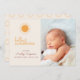 This cute boho hello sunshine birth announcement features a photo on the front and a space for babies name and brith statistic. The back features a simple sun pattern. Additional layouts available to include more photos on the back.
