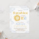 Celebrate your little one with this "Our Little Sunshine" 1st birthday invitation. Featuring a retro watercolor sun and soft blue clouds. Perfect for a gender-neutral summer or boho-themed party.