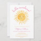 This cute baby shower invitation is decorated with a watercolor sun and says Hello Sunshine! in stylish pink script typography.