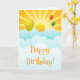Sunshine happy face and balloons in the clouds. Happy Birthday Card.