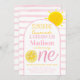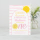 Invite features cute elements, a lemon, sunshine, and pink hues. Personalise the editable text and use it for a First Birthday celebration.