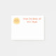 Send notes to your coworkers with a personalised fun and happy notepad. Just fill in your name or nickname and get to writing those important memos and reminders down. A happy and vibrant sunshine is on a white notepad with orange text.