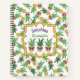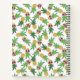 A pattern of fun summer pineapples wearing retro cat style sunglasses in a variety of tropical colours with the sunshine reflecting from their lenses decorates this fun notebook along with a trio of graphic pineapples and easy to customise text.