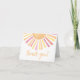 This bright and cheerful sun-themed thank you card is the perfect way to express gratitude after your celebration. The front of the folding card features a vibrant sun at the top with colourful rays in shades of yellow, pink, orange, and red, bringing warmth and joy to your message. Below the sun, the phrase "Thank You!" is displayed in elegant script, with fonts in soft yellow, pink, and orange hues to match the sunny theme.