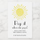 Pop it when she pops! Sunshine themed tag, perfect for a baby shower to have guests celebrate when baby arrives! Customise with name, event date or custom text.