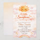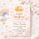 A cheerful sunshine and rainbow baby shower invitation featuring a smiling sun, soft pastel rainbow arch, and gentle sky tones. The colourful rainbow detail adds a playful and modern touch while keeping the warm sunshine theme at the heart of the design. Perfect for rainbow sunshine baby showers, spring celebrations, and joyful gatherings welcoming a little one.