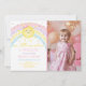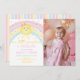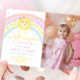 This adorable design features a sunshine with a pastel coloured rainbow and faux gold glitter confetti.