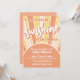 Retro Sunburst A Little Ray Of Sunshine Baby Shower Invitation in Burnt Orange, Yellow, and Off-White.