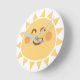 Brighten up your space with this fun and happy wall clock. A bright sunshine placed on a white background clock.
