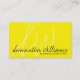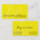 Make a fantastic first impression with these sunshine yellow stylish business cards. These business cards have a solid yellow background. They feature a handwriting script font with your initials in lighter yellow on the background. On the front, there is space for your name and title. On the back, it says "Stay in touch" and allows space for six lines of contact information such a phone number, cell phone number, fax number, email address, social media handles, your website or any other contact method your business connections use. This is a generic business card style that can be used for nearly any type of business such as consultants, graphic designers, entrepreneurs, real estate agents, cosmetologists, hair stylists, lawyers and thousands of other professions and job titles.