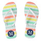 Step into cute summer style with our faded neon stripe flip flops. Design features wide stripes of sunwashed aqua, coral, chartreuse yellow and aqua, with your single initial monogram in navy blue at the heel.