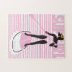 A cute stand up paddle board photo puzzle design just for girls. A silhouette of a girl on a paddleboard against a background of pink stripes and wavy lines is just right for any water girl who loves the sport of paddling. Customise it – add a name!