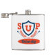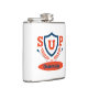 The flask itself is fine. It’s a cheap flask, obviously bought in bulk, however am prepared to overlook that. Given that it is a personalized item, I would have liked to have seen gift boxing instead of the generic packaging. Terrible printing, and/or quality. It’s a cheap, tacky vinyl. It is not cut straight and is also applied in a way that it is overhanging the bottom, causing the glue to catch on items and it will eventually roll and tear, damaging the wrap.