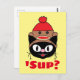 'Sup? (What's up) Cat Sock Monkey Hat postcard