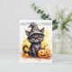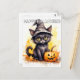 This cute Halloween postcard features an illustration of an adorable black cat dressed up like little witch. Please feel free to adjust all the available options as you wish. Thank you so much in advance.