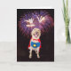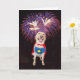 Big yellow Lab dressed as a super hero. You can customise the text inside, which says: "Have a DOG GONE SUPER Birthday!" The fireworks are thanks to PublicDomainPictures.net.