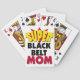 Shuffle these Super Black Belt Mum playing cards while waiting for your martial arts class. It's a cute Mother's Day, Birthday or Christmas gift idea. A text heavy design with red and yellow colours dominating it.