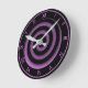 Loving this look. A cool hypnotic looking black and orchid, purple pink clock with tan Roman Numerals .This is a great piece for a fun room, a dorm room or anyone into sci fi and the mystics
