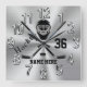 Super Cool PERSONALIZED Hockey Clock for Boys. Type in their Jersey Number (or Monogram) and their Name or delete it. Acrylic Clock has a cool Burnished look silver colour background with silver coloured numbers and black and grey hockey mask and hockey sticks. Incan make the hockey wall clock in ANY colours.