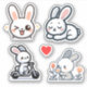 Amazing sticker sheet featuring a super cute bunny in four different situations, blinking, sleeping, riding a scooter and smelling a flower. Stick around and spread joy.