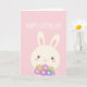 Super Cute Bunny and Flowers Pink Happy Birthday Card
