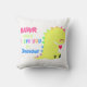 This pillow is sure to brighten your day with this cute loveable dinosaur. The quote says "rawr means i love you in dinosaur" TOO CUTE