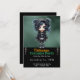 The backdrop of this invitation is steeped in inky black, shrouding both the back and the lower third of the front. This dark canvas sets the stage for the captivating elements that follow.