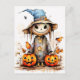 This unique Halloween postcard features an adorable little trick or treating scarecrow. Please feel free adjust all the available options as you wish.