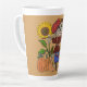 Cafe Latte Coffee Cup Mug printed with Super Cute Scarecrow artwork design illustration by TheFabricSeal at Zazzle.com.