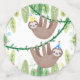 Celebrate your kiddo's birthday with these fun sloths designs on confetti. Featuring sloths hanging from vines in yellow and blue polka dot party hats. Perfect for adventure, jungle or safari theme birthdays.