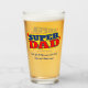 Graphic yellow, red and blue typographical slogan super dad personalised glass. A perfect gift for super dads. Personalise with your own messages and words of thanks and love on the front and the back. Uniquely designed by www.mylittleeden.com on zazzle.
