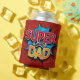 Super Dad Moustache Modern Grunge Can Cooler features the text "Super Dad" in modern red and yellow typography on a blue and red grunge background accented with a moustache. Created by Evco Studio www.zazzle.com/store/evcostudio