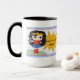 Half of this super girl cartoon mug is in colour and the other half is black white, both side have speech bubbles you can place your text in. Kind of like, before coffee (black and white) and after coffee. :) ( the colourful side!)