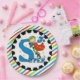 The super hero boy turning three years old will love this colourful, fun super hero boy design paper plate as an addition to his birthday celebration! Features a super hero in green with a green mask and red cape, bright blue text that reads 3 is Super, and a border with a decorative black ring and stripes of red, white, blue, and bright green!