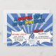 Celebrate the upcoming arrival of the newest super hero on the block with this action packed baby shower invitation!
