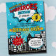 A superhero-themed birthday party is a popular and exciting way to celebrate a child's special day. It's a fun way to encourage imagination and creativity while celebrating a boy's birthday. This bold, bright coloured superhero-themed design featuring comic book superhero style in blue colour is a great way to bring the excitement of comic books and superheroes to life for young fans.