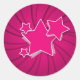 Super Hot Pink Stars and Swirl Background Classic Round Sticker