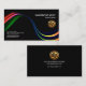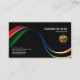 Card features an all black background with a set of simple colourful sound waves streaming through space. Over at the top right, you have your name, job title alongside a faux gold logo of a sound wave. The contact details are over at the lower left corner.