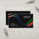 Card features an all black background with a set of colourful fibre optic waves streaming through space. Over at the top right, you have your name and job title whilst all your contact details are at the bottom left corner. Letterings are in white to accentuate the design. The similar black design theme flows over to the back of the card. Here you can find your logo near the midsection. At its side, you have the business name and URL respectively. Near the bottom, there is a slogan option for you to use. If you wish to download your photo instead of a logo, the dimensions are 1,000x1,000 pix. Youthful, dynamic, simple, elegant, a striking piece of design. A customisable card made for all to use.