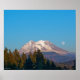 A landscape photograph of a moon event happening known as a Super Moon. The moon rise is near Mount Rainier in Washington.
