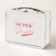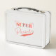 This is a standard metal lunchbox that appears to work just fine. We designed this box ourselves with an uploaded photo and custom text on the front and back. It looks absolutely beautiful except the front of the lunchbox is not centered like it shows in the photo. The print borders don't align with the inset flat part of the box where the preview photo online showed it perfectly centered in there. The back looks nice and centered though.