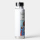 The bottle looks even better in real life. The ice cubes I put in lasts all day! I have my bottle with me all the time. It's summer and having something cold to drink feels amazing. With this bottle I always have something super cold. I have only tried the hot drink once and it lasted a long time as well. The color blue is a navy blue and the white printed on it is vibrant. It printed perfectly. I love my personalized smile water bottle.